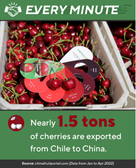 7。 每一分钟:近1.5吨樱桃从智利出口到中国