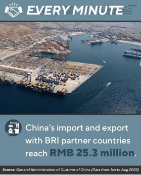 6。 每一分钟:中国与“一带一路”沿线国家进出口总额达到2530万人民币