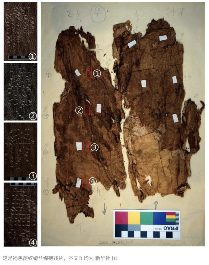 “古代丝织品的保存非常困难,目前仅在新疆民丰县尼雅遗址中发现了同样文字的汉晋时期的织锦,但年代比马王堆汉墓要晚很多。褐色菱纹绮丝绵袍上的文字是目前所知年代最早,织造技艺更复杂、更精美的丝织物上的文字。而且,此次发现的菱纹绮纹样属于新的纹样。”喻燕姣说。