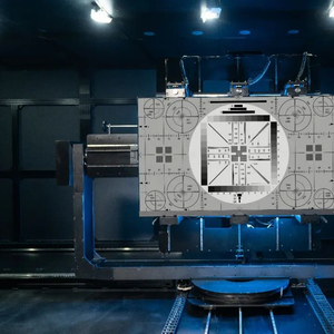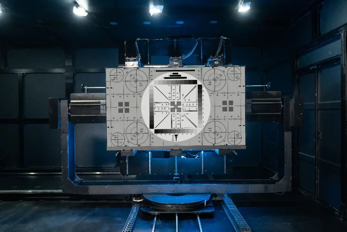 原来,在华为智慧屏实验室里有一间巨大的暗室,一台智慧屏产品的屏幕上播放着不同灰阶的纯色图片和色阶过渡图、窗口画面等各种检测图像,而在对面是三个光学镜头,其中一个是面拍镜头,主要用于大尺寸均匀性性能的快速测试,可以提升测试效率;另外一个,负责测试光学内容,诸如亮度、色域、视角等多达20余项指标,保证智慧屏的光学参数效果;最后一个则负责测试响应时间、闪烁指标。
