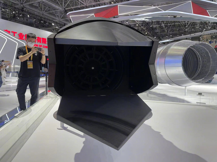 第十四届中国航展还没开始,许多新装备就吸引了外界的关注。11月6日,环球时报记者在展馆现场中国航发展台上发现一款带二元矢量喷管的发动机模型。