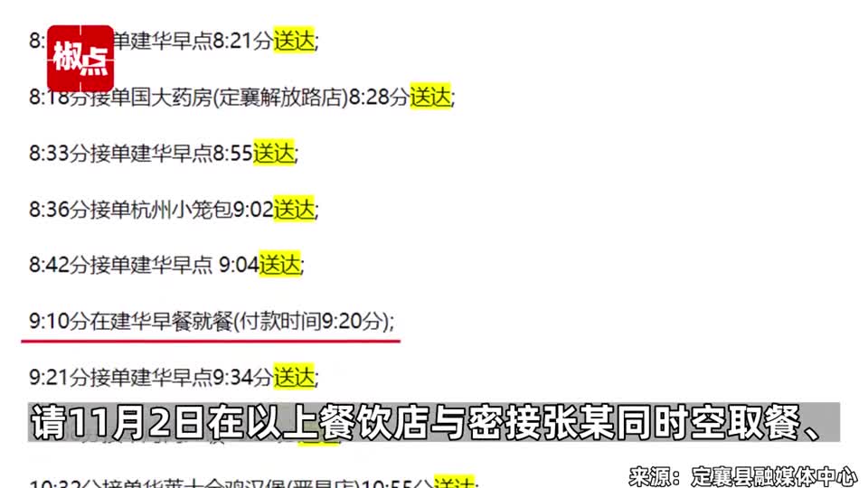 2022年11月5日在对阳性人员徐会某的密接人员张某的流调报告显示,张某于11月2日上午6:20分从家出发,到达定襄县十字街进行美团外卖接单;