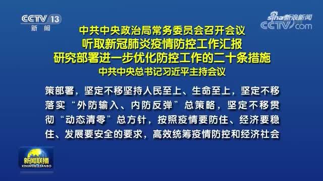 中共中央政治局常务委员会召开会议 听取新冠肺炎疫情防控工作汇报 研究部署进一步优化防控工作的二十条措施