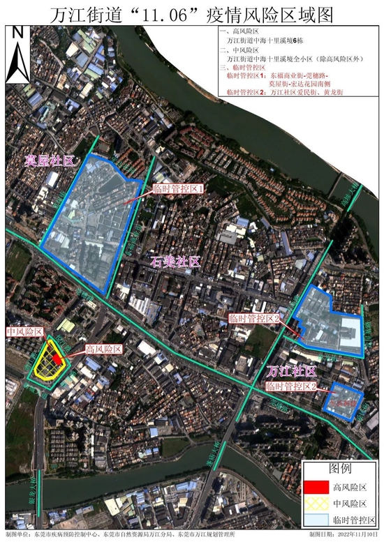 二、调整临时管控区。自2022年11月10日6时起,万江街道临时管控区调整为:①东福路商业街-莞穗路-莫屋街-宏达花园南侧;②万江社区爱民街、黄龙街(临时管控区内管理措施参照《万江街道新型冠状病毒肺炎疫情防控指挥部办公室通告 (第56号)》)。全面落实围合管理。区域内实行“全域封闭、足不出区、只进不出”管理。