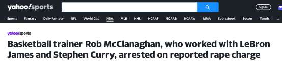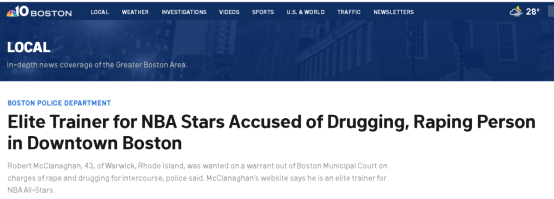 公开资料显示,麦克纳罕是美国NBA相当著名的球员教练,他的“学员”名单包括许多国际知名的NBA明星球员,比如勒布朗·詹姆斯、斯蒂芬·库里、凯文·杜兰特等。不少美国媒体在报道他被抓的消息时,也突出了他的这一身份。
