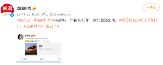 吴亦凡一审被判13年#吴亦凡一审被判13年,附加驱逐出境。#都美竹发声终于等到了# !#都美竹 终于等到了#