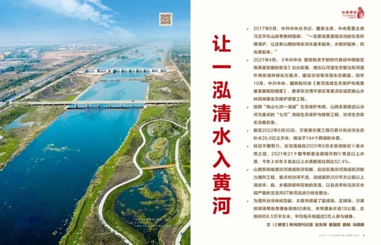 为解决汾河流域水资源短缺、空间分布不均问题,山西实施引黄济汾、引沁济汾等跨流域调水工程,建立汾河流域水资源统一调度机制。截至2022年6月30日,万家寨引黄工程已累计向汾河生态补水20.6亿立方米,相当于144个西湖的水量。