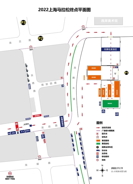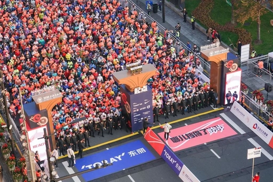 11月27日,上马起点区域禁止共享单车进入,您可以搭乘2号线/10号线至南京东路站,步行时间约15分钟可以抵达集结区,按号码布上的分区,进入起点区域相应的ABCDE集结区检录集结。