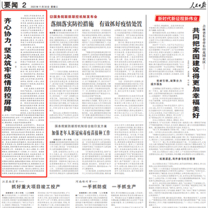 11月30日,《人民日报》二版再度刊发“仲音”署名文章,题为《齐心协力,坚决筑牢疫情防控屏障》。这也是近期“仲音”第十六篇关于疫情防控的文章。