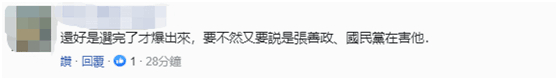 对于郑文灿的这番说辞,一些岛内网友并不买账。有网友在台媒评论区留言表示,“还好是选完了才爆出来,要不然又要说是张善政、国民党在害他。”↓