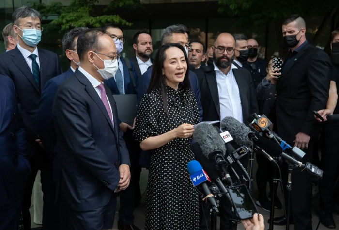 2018年12月1日,孟晚舟在温哥华机场过境时被加拿大警方应美国司法部的要求逮捕,美国指控她在华为的伊朗业务问题上误导汇丰银行。由此,美加的政治操作开启了涉及三国的长期司法与外交博弈。2021年9月25日,新华社发布消息称,经中国政府不懈努力,当地时间9月24日,孟晚舟女士已乘坐中国政府包机离开加拿大。
