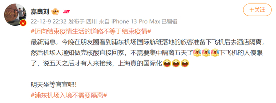 但实际情况并非如此。根据网友的反馈,目前入境旅客仍需执行5+3的隔离政策。