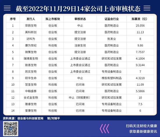 14家公司拟募集资金为126.7亿元,菲鹏生物最多,25亿元。