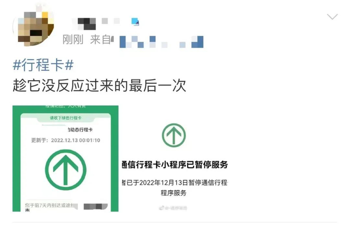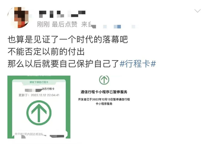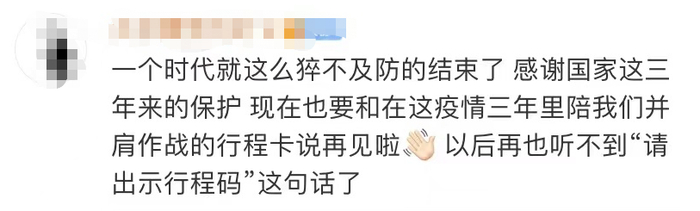 有网友觉得这是“一个时代的结束”,以后再也听不到那句“请出示行程卡”。