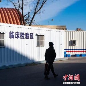 图为一位市民经过方舱发热门诊临床检验区设施。 中新社记者 侯宇 摄