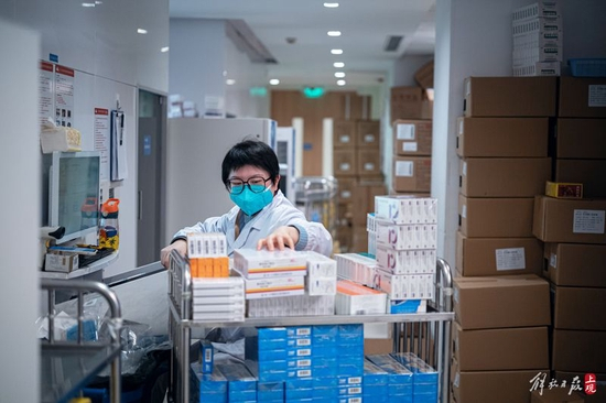 同仁医院最近加强了各类药物的储备,药剂师身后,堆叠着大量还未拆封的成箱药品。