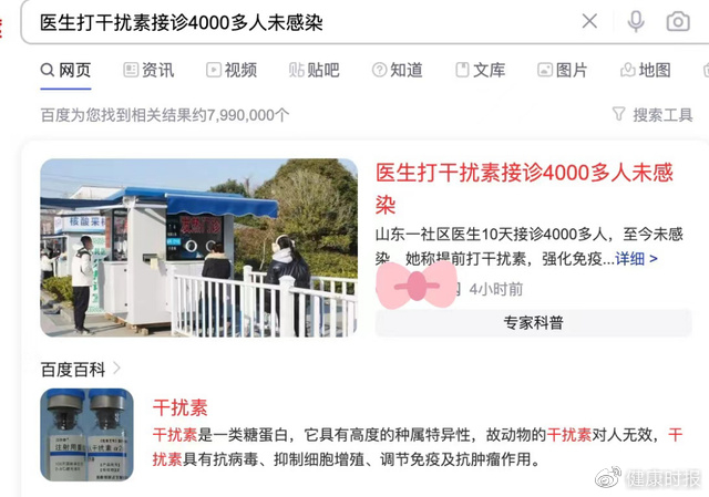 12月23日,一则关于“医生打干扰素接诊4000多人未感染”的消息登上热搜,文章中提到,“真正立了大功的是干扰素水针剂,它对流感病毒效果没这么明显,但对奥密克戎病毒疗效非常明显。”