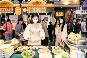 首届海南鸡饭节设置有非遗展演、创意手作、情景表演、海南获全国旅游商品大赛金奖展和海口城市文化印记展台等板块,推出“国风游园·梦回海丝”的沉浸式活动,还有国风换装坊、海丝秀场、盛唐夜场舞蹈快闪等潮流玩法,开启“最趣”国风潮玩之旅。在活动期间,游园区内定时开展雅艺表演,包括非遗点茶、香道制香以及古风传统乐器合奏演出,让逛街的市民游客沉浸式体验雅致的传统文化。
