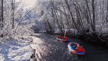 全球连线|“山谷里的冬日漂流”扮靓长白山冰雪游