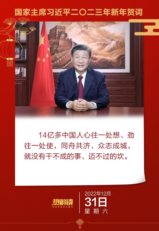 “历史长河波澜壮阔,一代又一代人接续奋斗创造了今天的中国。”2022年12月31日,国家主席习近平通过中央广播电视总台和互联网,发表二〇二三年新年贺词。