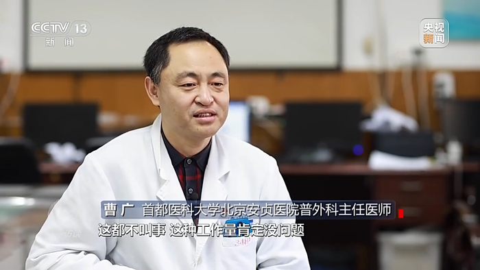 曹广是首都医科大学北京安贞医院普外科主任医师。在今年12月份北京新冠病毒感染者激增的特殊时期,在岗的医生们差不多都要一个人顶两三个人用,门诊、急诊两头跑是他们的工作常态。