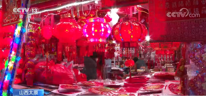 总台记者 刘媛媛:现在我所在的是山西太原的一家大卖场当中。伴随着春节临近,卖场的年味儿也是越来越浓。我们可以看到,各个商户的摊位上摆放着各式各样的年货产品,非常红火。