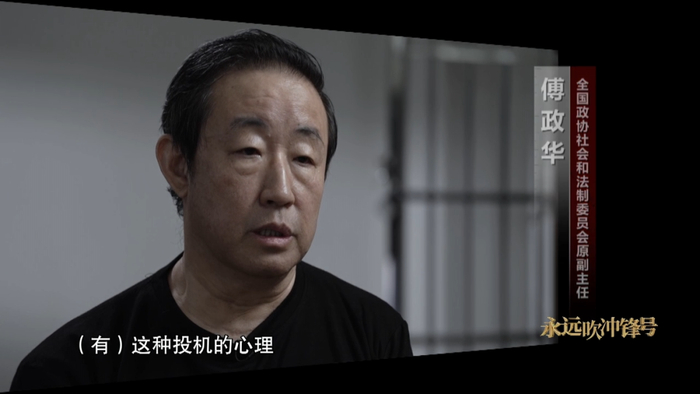 李永红(中央纪委国家监委第十一监督检查室副主任):傅政华1970年当兵以后,第二年就入党。入党的时候他的老班长当时提了一条意见,说他年龄太小,建议再缓一缓再考虑他。这件事儿傅政华记了整整一辈子,直到接受审查的时候,还念念不忘这件事儿,他把入党、做官看成了人生的入场券、垫脚石、敲门砖。
