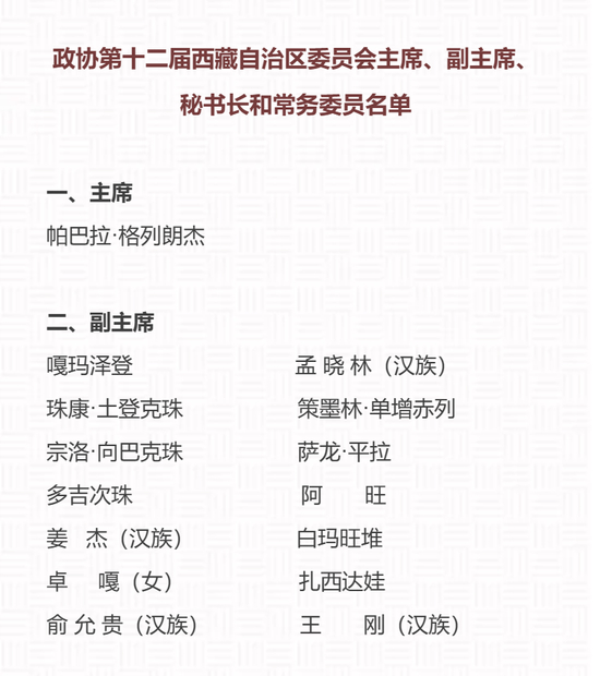 刚刚!选举产生新一届西藏自治区政协主席、副主席(附照片和简历)