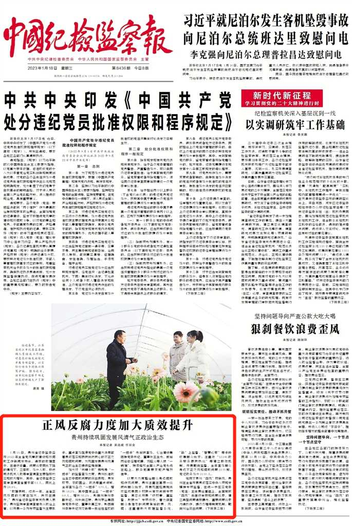 《中国纪检监察报》头版、中央纪委国家监委网站|