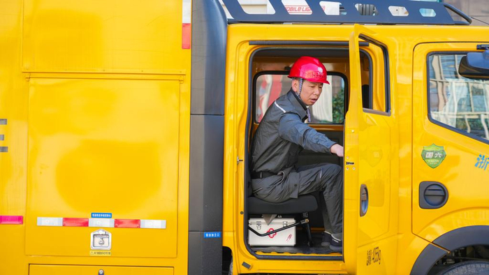 穿好绝缘服,操作斗臂车升上10余米的高空,对导线进行遮蔽、包裹、隔离,拆除老化的开关引流线,更换组装新开关……初一清晨,国网湖州供电公司带电作业班班长金渊带领工友们在10千伏溪工202线开始带电抢修工作。