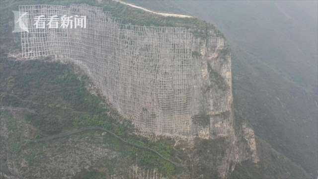 看看新闻Knews记者在现场看到,整个危石区长60米,高76米,方量能达到上万方。一旦出现松动掉落,就会威胁到下方渝怀铁路的安全运行。因此,从2018年上半年开始,当地铁路部门耗时两年半的时间,为这片山体穿上了一层钢衣。