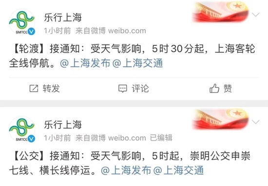 据@乐行上海消息,受天气影响,上海客轮自今天5时30分起全线停航,崇明公交申崇七线、横长线5时起停运。