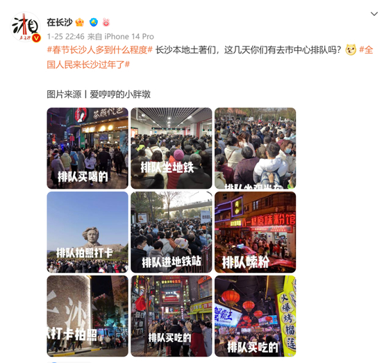 还有小红书博主晒出,长沙某知名餐厅的排队图。她表示,简直像一个景点一样