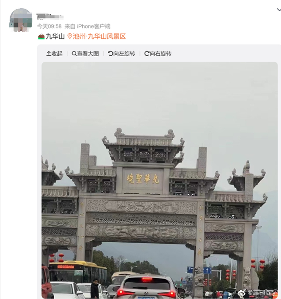 今天早上九点左右,进出九华山的路上就已经堵得水泄不通。
