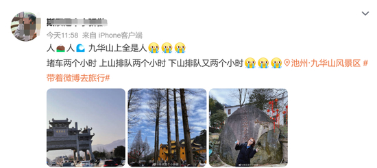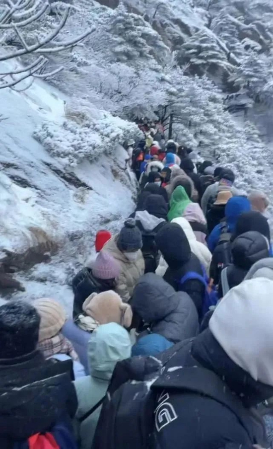 有网友在社交平台发文称:初五人多到看不到风景,下山排个队两个多小时。