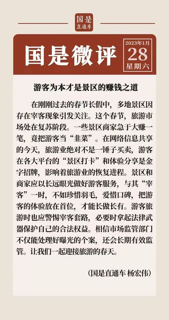 我们看到,在刚刚过去的春节长假中,多地景区因存在宰客现象引发关注。这个春节,旅游市场处在复苏阶段。一些景区商家急于大赚一笔,竟把游客当“韭菜”。