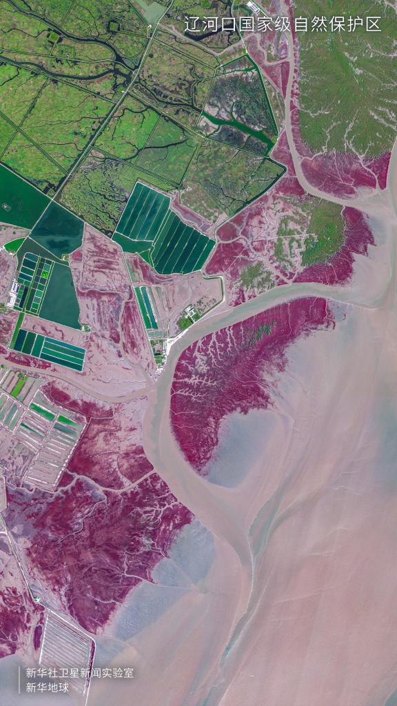 航拍画面,辽宁省辽河口国家级自然保护区。