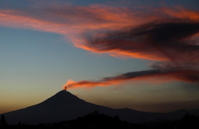 当地时间2023年2月1日,墨西哥,波波卡特佩特火山冒出了一股蒸汽柱。
