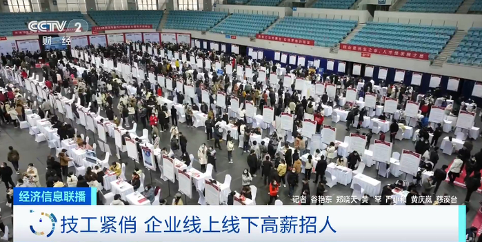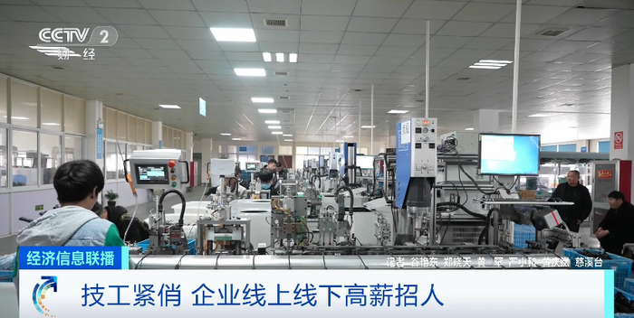 浙江某光伏科技有限公司总经办主任 陈绍刚:整个人才的储存量不太够。部分岗位年薪至少20万元,可能50万元,如果有重大的技能突破,100万元年薪都可以。 技工紧缺的情况不仅出现在慈溪的制造业基地。在北京的一家劳务公司,直播招聘业务的负责人臧远杰,正在帮助企业做线上招聘。他告诉记者,今年一开年,线上招聘也出现了供需两旺的局面。