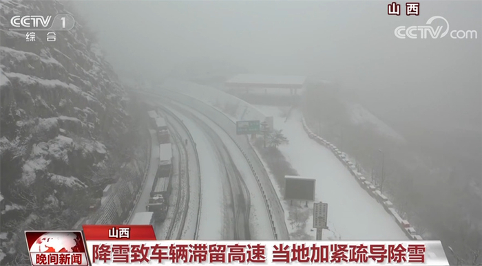 从2月8日晚上开始,山西多地迎来大范围降雪,太原、阳泉、吕梁、运城等地降雪量较大。2月9日上午,在太旧高速公路晋冀两省交界处,路面积雪厚度将近10厘米,阳泉、平定等高速收费站临时封闭,近20辆货车滞留在高速路上,交管部门紧急进行疏导。