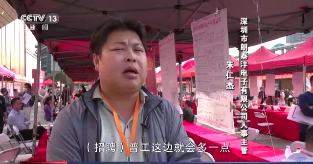 龙华区人力资源局就业促进科科长 关凯尹:今年的企业较往年有井喷式的一个变化。报名参加的企业场场爆满,基本上都挤不进去,反映出今年节后企业的订单有了大量的增长,我们求职者也是比以往要火爆很多,以往都是企业在找员工,那么今年是我们的员工有很多的企业可以找,就例如我们今天早上有一家电子厂,他一下子就拿出了50个普工的岗位,直接面试以后直接就带进了厂,直接就可以入职了。