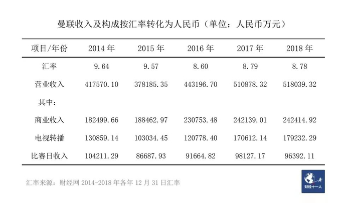 从曼联和恒大淘宝的收入成本对比看,2018年,曼联的营业收入是恒大的8.59倍,但主要营业成本、职工薪酬却只分别比后者高了2.35倍、1.76倍。