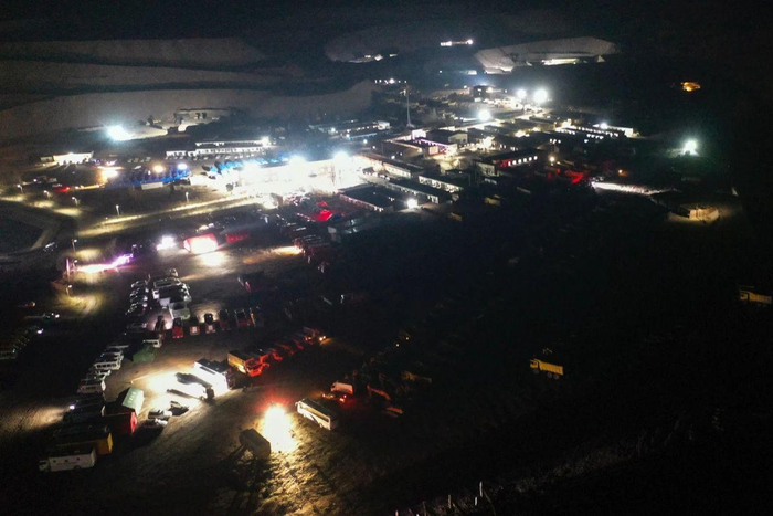 2023年2月23日凌晨,各救援队伍在内蒙古自治区阿拉善盟阿拉善左旗新井煤业有限公司集结(无人机照片)。新华社记者 连振 摄