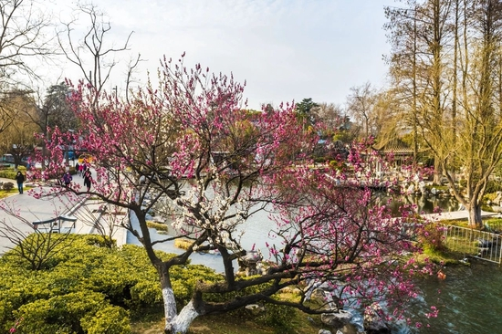 玄武湖畔的芳菲正盛,扬州瘦西湖景区的梅林也迎来绽放姿态。今年,瘦西湖景区举办首届梅花艺术节,围绕“探梅”“画梅”“唱梅”“舞梅”等主题,开展梅花书画收藏展、梅花盆景展、非遗体验、戏曲演艺等活动,将梅花的清丽姿态与瘦西湖的秀丽风光相结合。