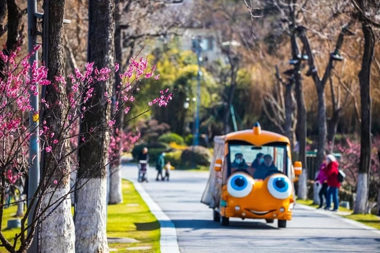 除了形态各异的兰花,景区内梅花和部分早樱也已开放。“不少市民朋友习惯来玄武湖赏梅,今年景区开通了‘水上+陆上’赏梅路线,方便大家多角度欣赏梅花,还推出免费的梅花妆造体验和研学,丰富游客的赏花体验。”