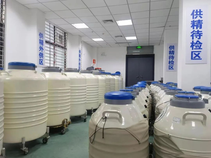 志愿者捐赠的精子,经过处理、编号后,将会放入零下196℃的液氮里保存。人类精子库的储藏室里看起来不过是几十个大铁罐,但每一个铁罐容纳了五万份随时可以复苏的精子。