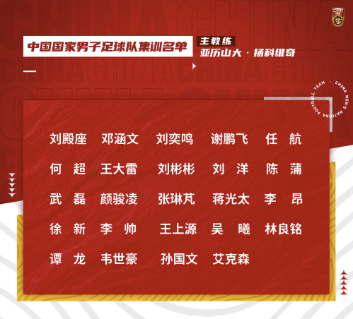 2月27日,中国足协官网公布了最新一期国家男子足球队集训名单。武磊、颜骏凌、张琳芃等人领衔,入籍球员艾克森在列。这是新帅扬科维奇上任后的首期集训名单。据了解,为备战2023年亚洲杯、2026年世界杯亚洲区预选赛,经中国足球协会研究批准,中国国家男子足球队定于2023年3月1日至27日期间赴海南省海口市、新西兰组织集训并参加热身赛事。