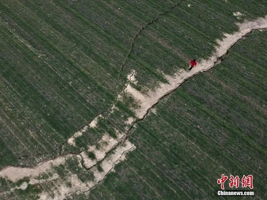 当地时间2月20日,航拍土耳其卡赫拉曼马拉什,当地在发生两次强烈地震后,大地裂痕将农田一分为二。图/视觉中国