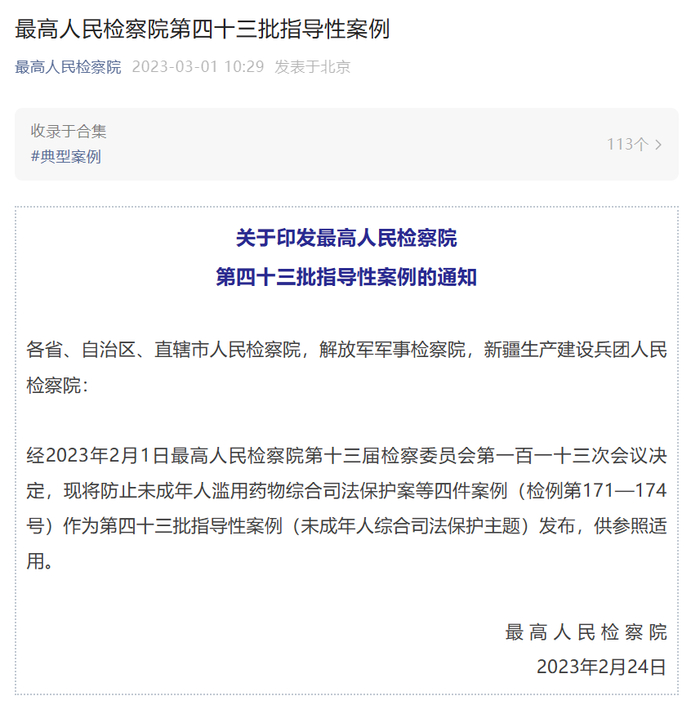 微信公众号“最高人民检察院”3月1日公布最高人民检察院第四十三批指导性案例,其中第172号案例为阻断性侵犯罪未成年被害人感染艾滋病风险综合司法保护案。