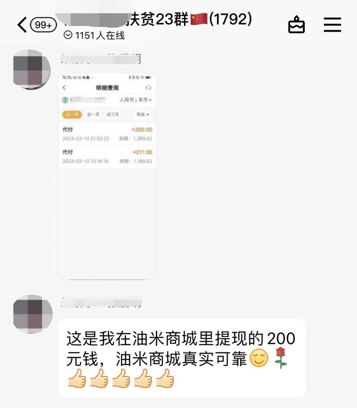 熟悉套路的撸盘者,有时会配合团队长为项目叫好,扮演起氛围组。比如在群内分享投资收益或者顺利取现等消息,以释放项目正在正常运作的信号。